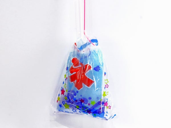 お祭りやイベント時の店頭販売にも。ボールすくいの袋にパックごと入れてみました。