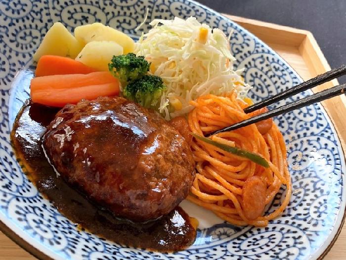 ガロニ(付け合わせ)としても個食パックのレンジナポリタンは便利です。洋食プレートやお弁当にも便利!