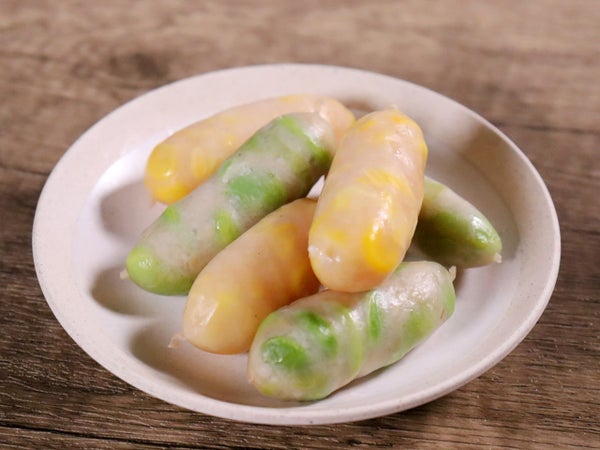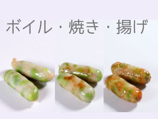 鶏肉ベースの腸詰めですが、枝豆の量がいっぱい過ぎて畜肉比率が低いため「ウインナー風」としています。