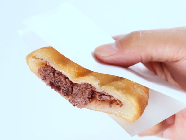 北海道産あずきがずっしり入っています。揚げ始めは重くて油に沈むので鍋底での焦げ付きに注意してください。