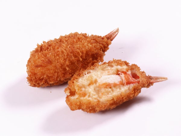 かに(国産)、乳等を主要原料とする食品、小麦粉、マーガリン、牛乳、野菜スープ、ワイン、バター、食塩、こしょう、衣(パン粉、加工米粉、加工小麦粉、加工コーングリッツ、食塩、粉末油脂)/調味料(アミノ酸等)、香料、カロチノイド色素、(一部にかに・小麦・乳成分・大豆を含む)