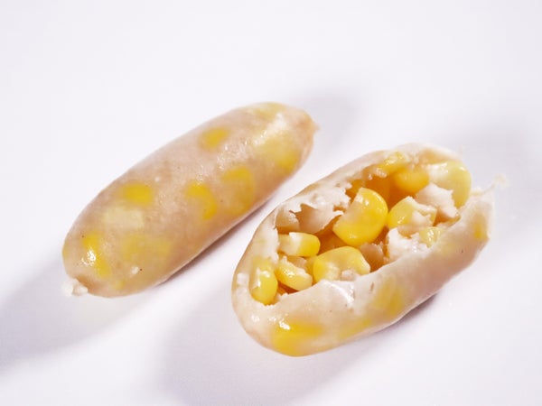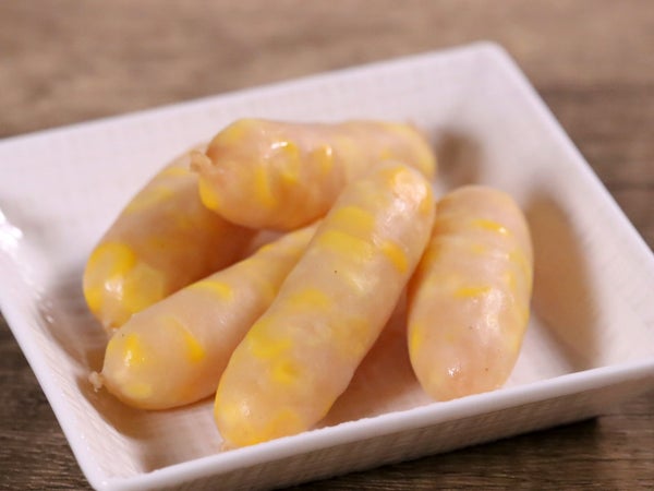 ごろごろっと甘いコーンが口いっぱいに広がる、肉より具材量が多い天然腸詰めおつまみです。串に刺したり、そのまま焼いたり、揚げたり、色々なメニューにアレンジできます。