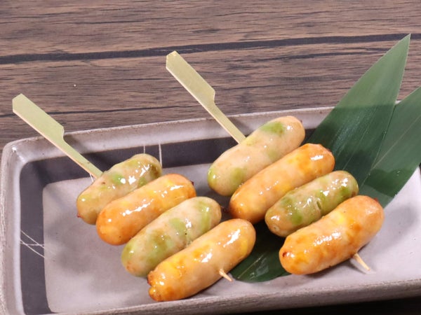 串に刺して焼くと、楽しい一品になります。(「枝豆のウインナー風」は別売りです)