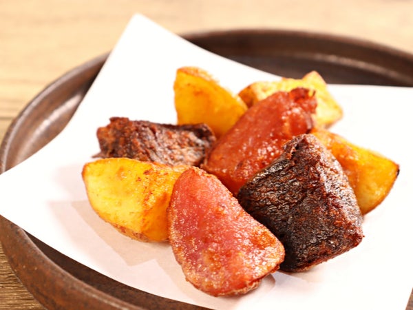 北海道産のじゃがいも「インカのめざめ」「ノーザンルビー」「シャドークイーン」をミックスしました。すべて北海道で品種改良されたじゃがいもで、色も味も異なるおいしさを楽しめます。