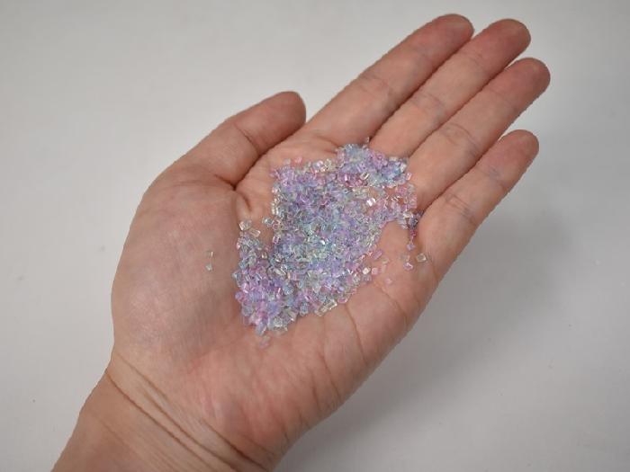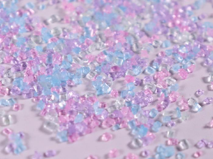 白・ピンク・水色・紫色の4色を混ぜ合わせた、まるで宝石のようにキラキラ輝く砂糖です。デザートのトッピングとして重宝します。