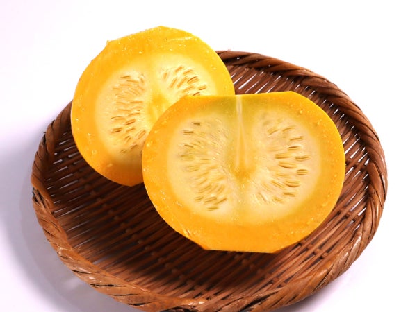 生食できる珍しいサラダかぼちゃです。完熟させず、若取りの状態のため皮は柔らかくカットしやすいのも特徴です。くせのない味わいで、コリコリとした食感が料理のアクセントになります。