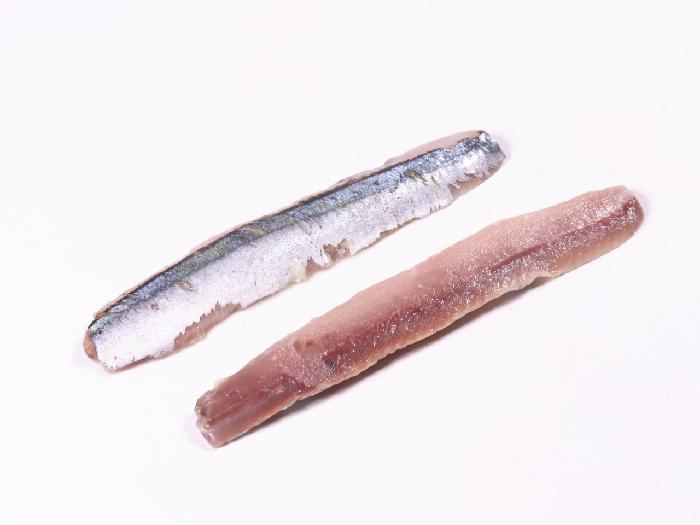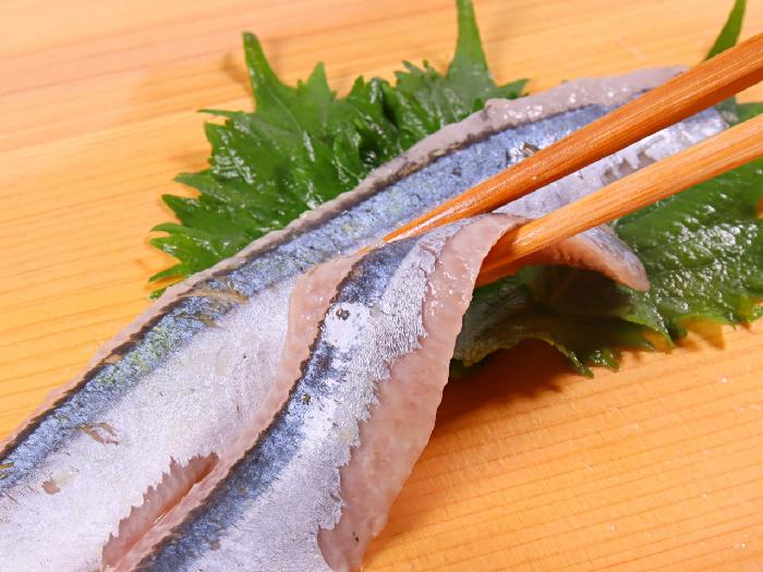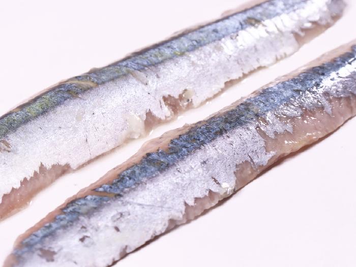 北海道産の鮮度の良いさんまを刺身用のフィレにしました。皮取りをしてあるので、スライスするだけでさんま刺しが提供できます。小骨は取っていませんが、そのまま食べられます。