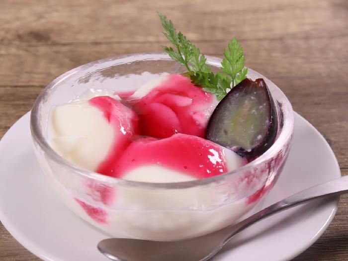 長野県オリジナルの黒ぶどう品種”ナガノパープル”のシロップを使用したジュレソースです。甘味料不使用の自然の甘さで、果実のやわらかな風味や濃厚な味わいが楽しめます。