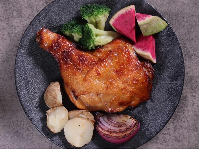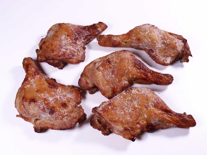 醤油ベースでしっかり味の入った骨付き鶏もも肉のローストです。温めるだけで食べられるので、コース料理やテイクアウトなどにもお使いいただけます。1本ずつバラ凍結の為、タレが付いていながら使いやすい商品です。