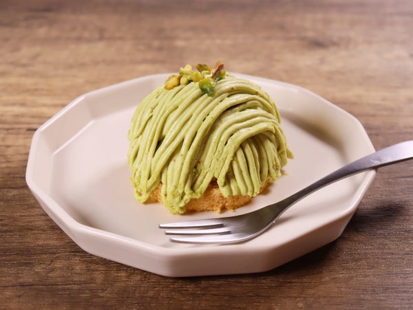 アーモンドスポンジにホイップを乗せ、モンブランクリームに混ぜ込んだピスタチオペーストと、トッピングに乗せたピスタチオダイスが香ばしい、ナッツ風味のモンブランです。