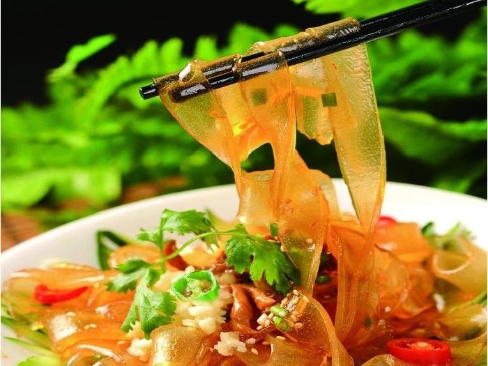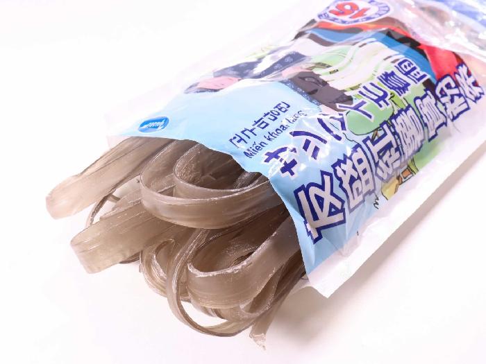 サツマイモでん粉から作られた幅15mmの春雨です。もちもちとした食感で、火鍋や麻辣湯(マーラータン)などの煮込み料理によく合います。