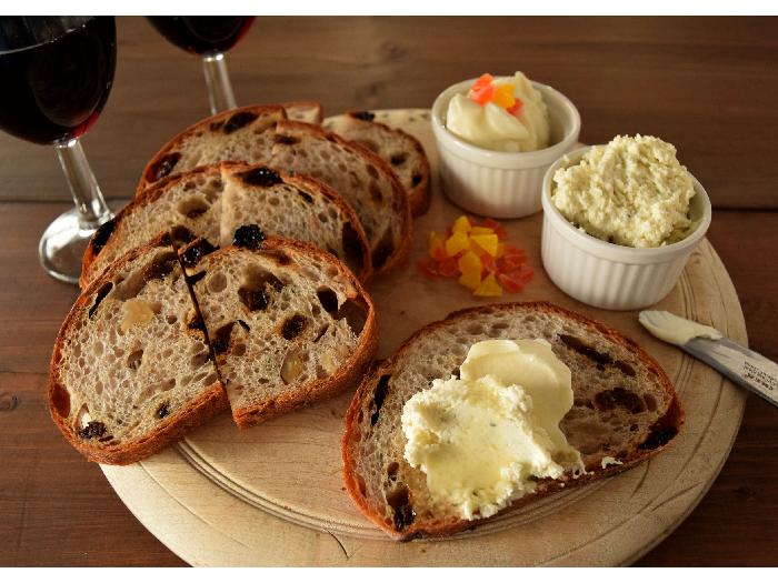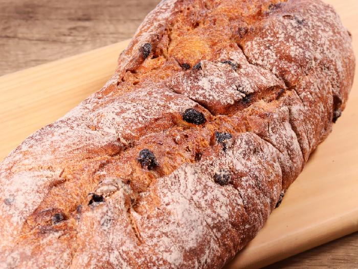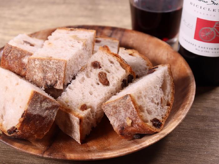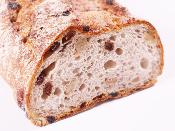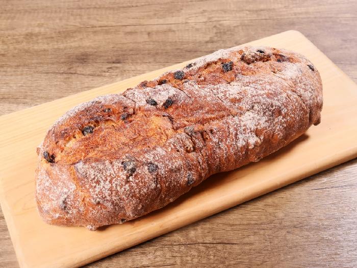 クルミの香ばしさとレーズンの甘酸っぱさが調和した、コクのある味わいが特長です。生地には自家製サワー種を使用しワインやチーズともよく合います。
