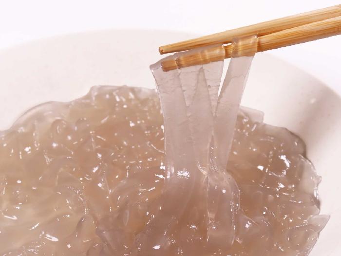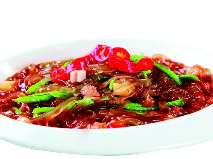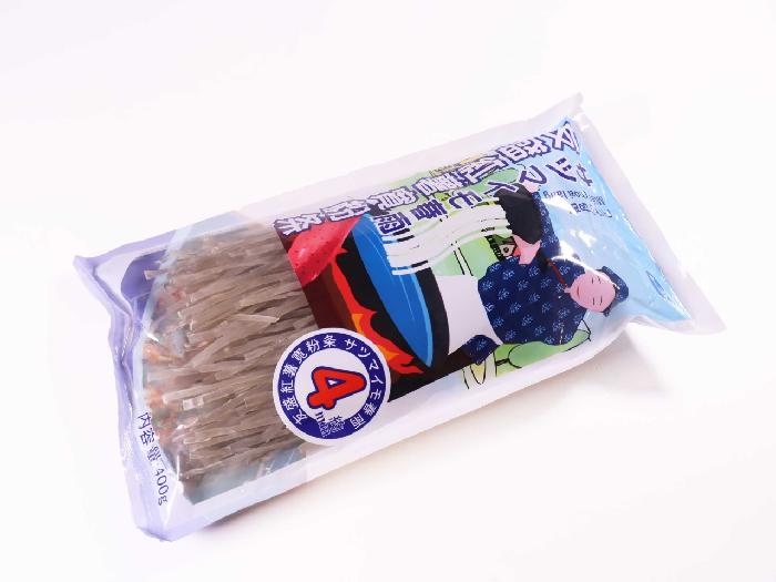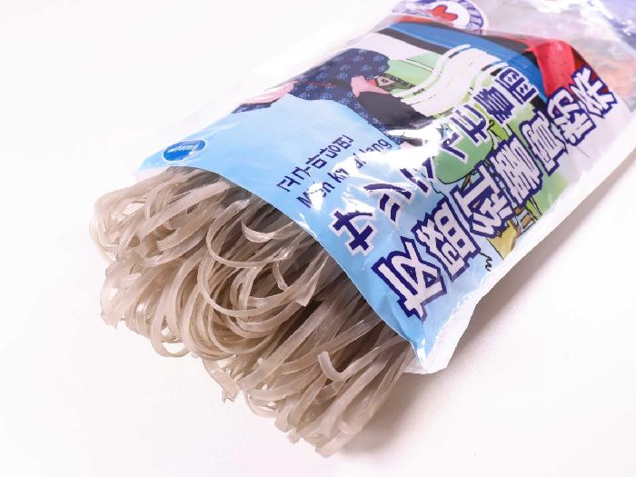 サツマイモでん粉から作られた幅4mmの春雨です。もちもちとした食感で、火鍋や麻辣湯(マーラータン)などの煮込み料理や炒め料理にもにもよく合います。