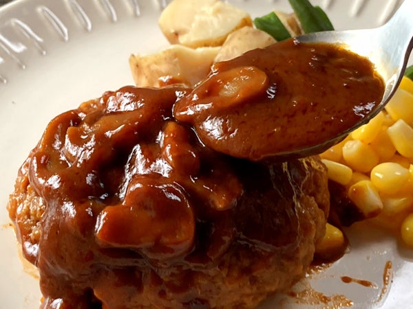 外側のデミソースと中のチーズソース、ダブルでおいしいハンバーグが手間なく提供できます。