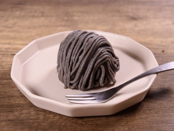 黒いシックな外観が目を引く、黒ごまの和風モンブラン。