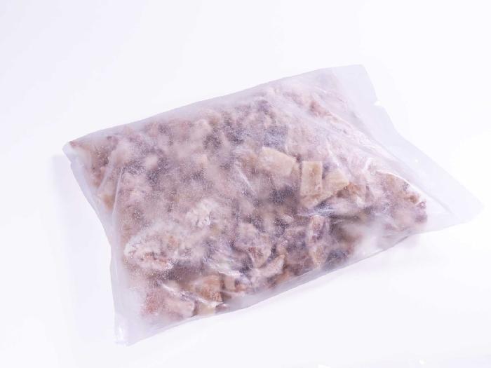 バラ凍結ではありません。※機械カットのため、大小バラつきがございます。※ボイル時の水分があらかじめ多く含んでいる商品の為、解凍時ドリップ多めです。