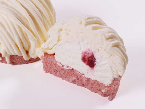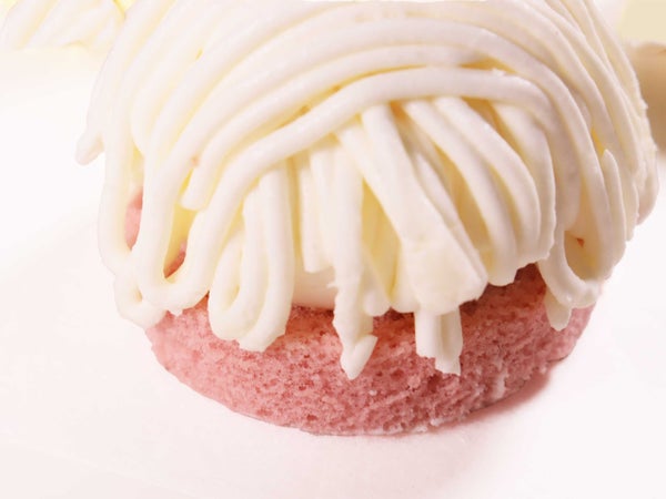 ストロベリースポンジと中心に甘酸っぱいベリーソースを仕込み、レアチーズケーキのような、コクのあるチーズクリーム・粉糖で純白に仕立てました。