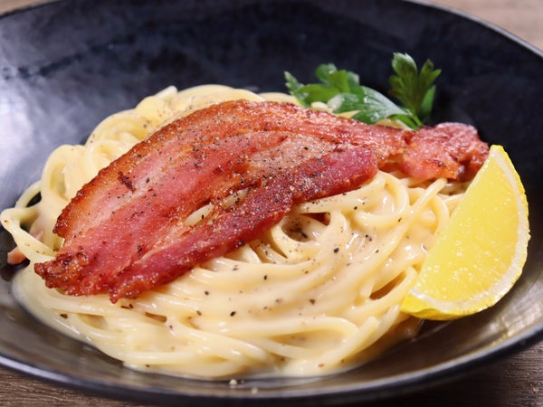 乾塩製法で、肉本来の旨味を凝縮され、コクと香りが広がる、リン酸塩も不使用の超本格的な厚切りベーコンスライスです。余分なものを使用せず、塩とぶどう糖だけのシンプルな味付けで肉本来のうまみを引き出しました。肉々しい食感の本格派ベーコンです。大きさをいかした、カレーやカルボナーラトッピングや、ハンバーガーやポテトサラダにも人気。加水が無いので、焼成後の縮みやドリップがほぼありません。