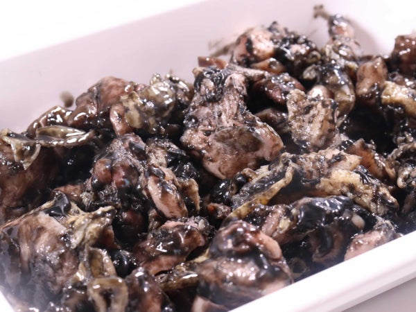 炭火で焼き上げた宮崎・鹿児島のご当地料理です。焦げているわけではなく、炭の色で驚くほど真っ黒な見た目です。