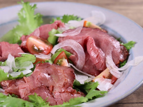 良い意味で、牛肉ではないのかな?っと思うくらいサッパリとしていて、いくらでも食べれる。 高級なハムのような食べやすさ! 葉物多めにサラダのよえに提供したら、お客様に好評でした。