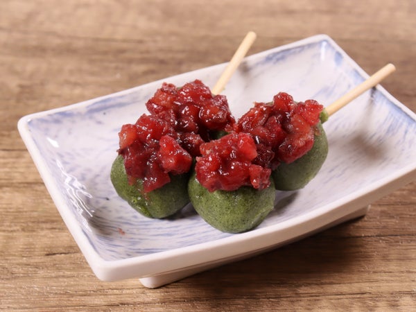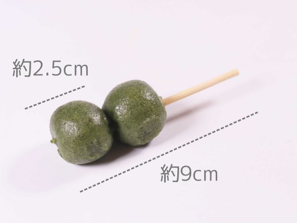 1玉の直径約2.5cm。和スイーツの盛り付けのひとつに使えるかわいい串だんごです。