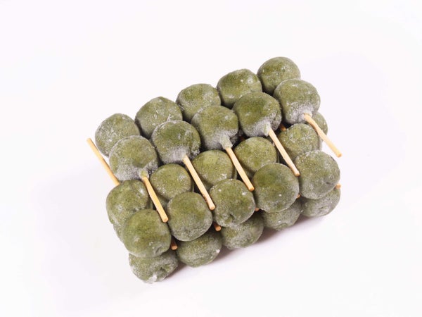 自然解凍で使用できる2つ玉のよもぎ串だんごです。