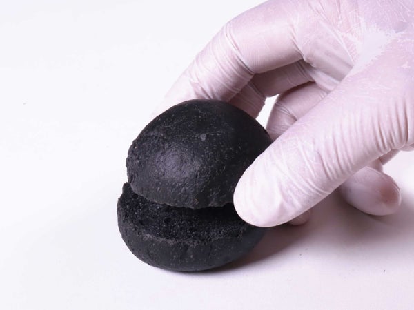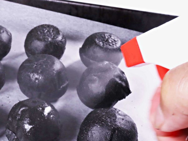 竹炭で黒くしたミニバンズ。直径約5cm・高さ約4cm。