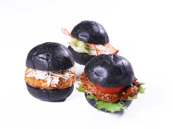 かわいいバーガーやピンフードが作れる竹炭を加えた黒いミニバンズ。直径5cmと小さく、スライス済みなのでスライダーという一口サイズのハンバーガーを簡単に作ることが出来ます。コースや宴会メニューとしても、とても使いやすい商品です。