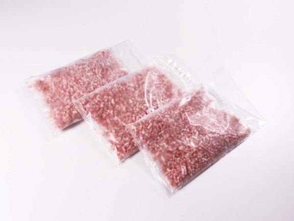厳選した馬肉をミンチ加工後、フレーカーでさらに細かくしました。馬肉にこうね(たてがみ脂)を加えています。
