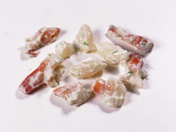 カナダホッキ貝・イカ・ししゃも卵をマヨネーズ風の調味料で和えた彩りの良い珍味です。ホッキ貝は程よいカットサイズでしっかりと存在感を感じられます。また、ししゃも卵の食感が良いアクセントになっています。軍艦寿司にもおすすめです。