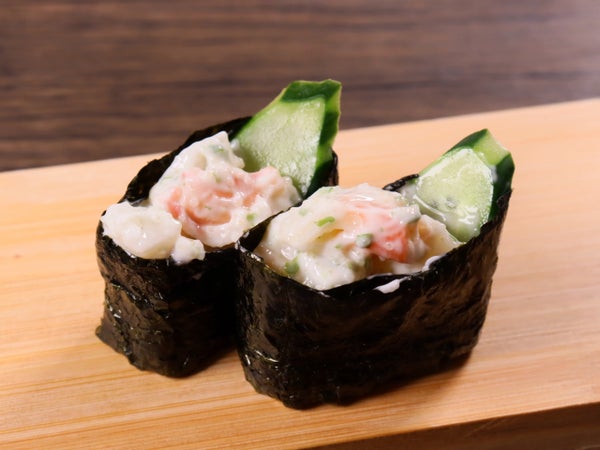 寿司でも人気のネタです。ちょっとぜいたくなホッキサラダ軍艦に。