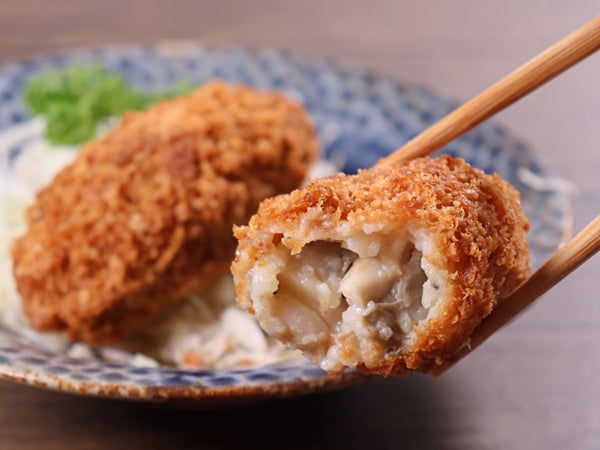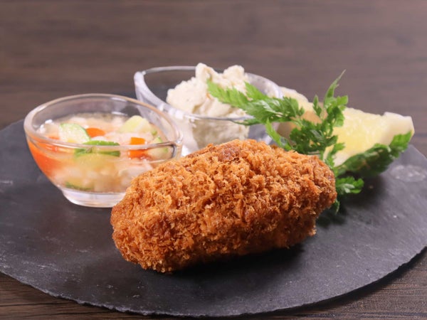 標準的なかきフライ25gの2倍以上、まるでかにクリームコロッケかと思うような、およそ見たことのない超超大粒のかきフライです。なかもしっかり大きなひと粒かきを使用しています。提供した時のお客様の反応が楽しみになる一品。広島県産かきを県内の工場で加工しています。