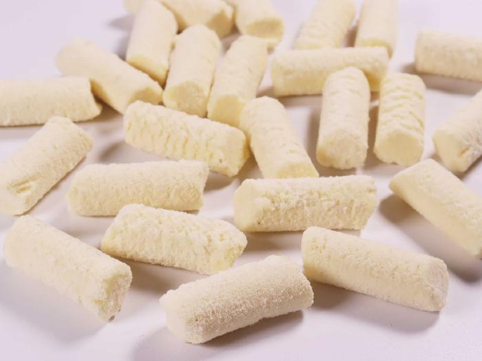 ヨーロッパ産じゃがいもを使用しベルギーで作られた欧州仕立てのマッシュポテトをペレット状にバラ凍結。水または牛乳を加えて加熱するだけで作れます。