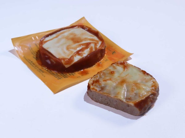鶏肉(国産)、ソース(トマトペースト、砂糖、食塩、醸造酢、ニンニクぺ^-スト、香辛料)、たまねぎ、チーズ、牛脂、パン粉、粗ゼラチン、まいたけ、粒状大豆たん白、牛肉、でん粉、トマトケチャップ、食塩、香辛料、卵たん白/増粘剤(加工デンプン、キサンタン)、調味料(アミノ酸)、リン酸塩(Na)、酒精、着色料(カラメル、カロチノイド)、香料、(一部に卵・乳成分・小麦・牛肉・大豆・鶏肉・ゼラチンを含む)