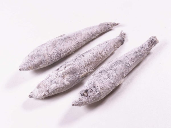 国産のめひかりを丁寧に泥取りし、素材の旨みを味わえるようにシンプルに塩のみで味をつけて粉付けしました。頭付きなので腹のほろにがさがありつつ、ふわふわの身が味わえる価値のある唐揚げです。打ち粉はでん粉のみなので、フライや天ぷら等にもアレンジ可能です。
