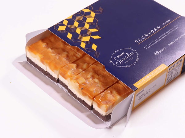 りんごシロップ漬け(果肉)、乳等を主原料とする食品、砂糖、全卵、水あめ、小麦粉、カラメルソース、ココアパウダー、油脂加工品、ゼラチン、ぶどう糖/トレハロース、ゲル化剤(増粘多糖類)、乳化剤、膨張剤、香料、酸味料、(一部に小麦・卵・乳成分・大豆・りんご・ゼラチンを含む)