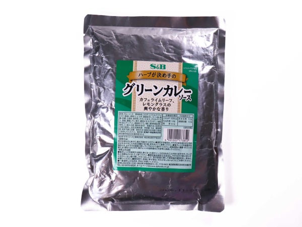 カフェライムリーフ、レモングラスでエキゾチックな香りを醸し出し、ココナッツミルクがコク深い味わいのグリーンカレーソースです。明るい緑色にこだわりました。