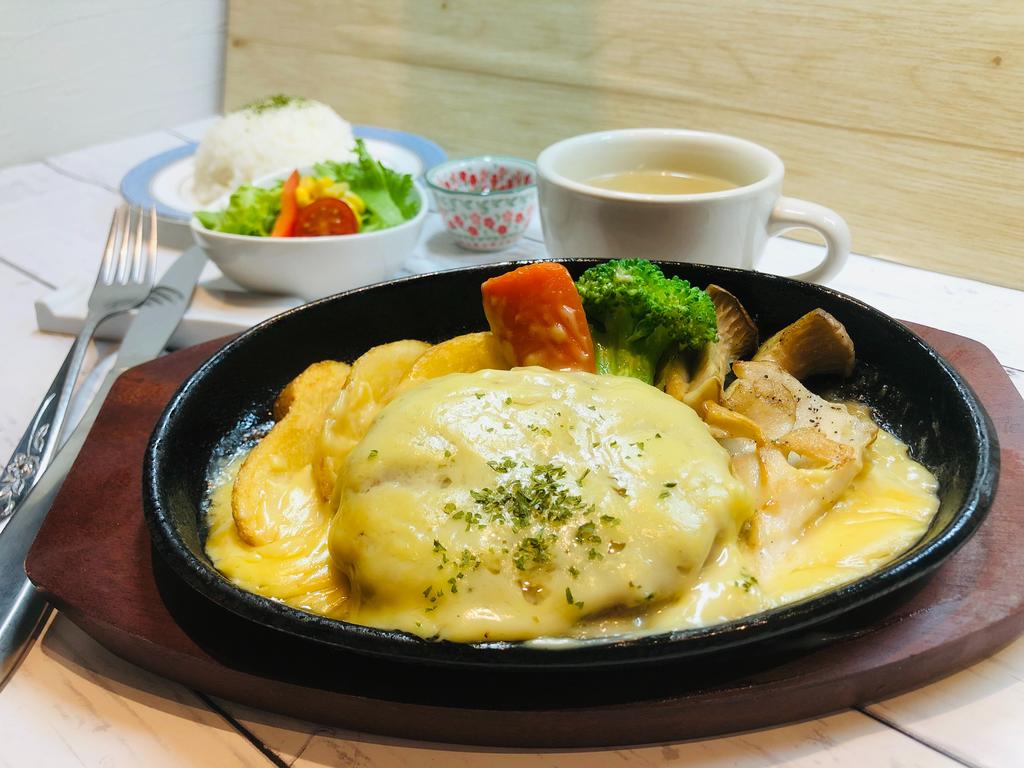 ゴーダ、ホワイトチェダー、パルミジャーノ・レッジャーノの3種のチーズを使ったチーズフォンデュ仕立てのハンバーグです。ソースがたっぷり入っているので盛り付けもサマになります。また、ソース充填タイプなので湯煎するだけで簡単に提供する事ができます。