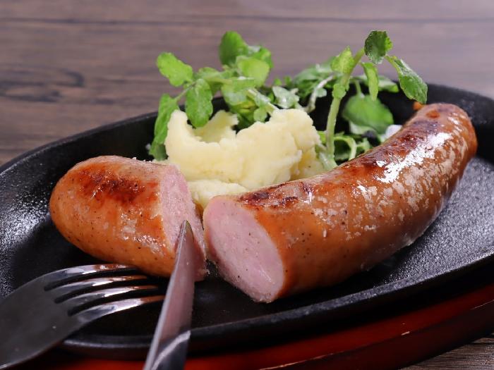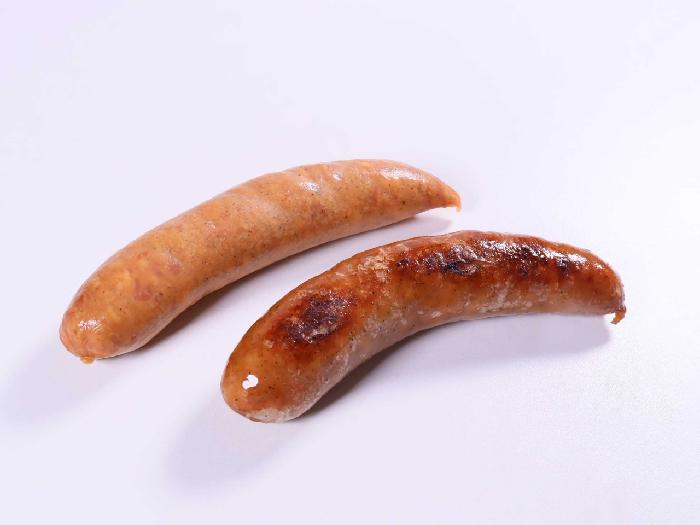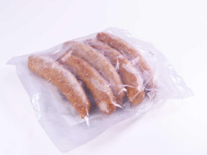 香辛料の効いた極太タイプのフランクソーセージです。粗挽きの肉粒感が特徴で、皮は豚腸を使用しパリッとした食感です。コリアンダー・ブラックペッパー・ニンニク・ナツメグ・タイムなどの香辛料を使用し風味豊かに仕上げました。13mmチョッパーの粗挽きタイプです。豚腸を使用したパリッとした食感が特徴です。イベントメニューや、パーティーメニューのメインとして、満足度の高い商品です。
