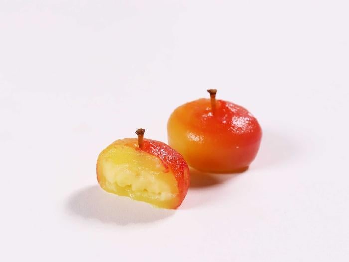 赤く可愛らしいりんごを模った餅でカスタードを包んだ、小さな餅菓子です。