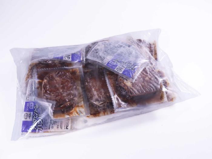 食肉(豚肉、牛肉、鶏肉)、たまねぎ、牛脂、つなぎ(パン粉、でん粉、全卵、粉末状植物性たん白)、粒状植物性たん白、麦芽エキス、食塩、しょうゆ、香辛料/カラメル色素、リン酸塩(Na)、調味料(アミノ酸)、ソース(ソテードオニオン(中国製造)、赤ワイン、砂糖、ビーフエキス調味料、デミグラスソース、ぶどう酢、肉エキス調味料、バター、食塩、ガーリック、ローストオニオンペースト、ブランデー/増粘剤(加工デンプン)、カラメル色素、調味料(アミノ酸等)、香辛料抽出物、香料)、(一部に小麦・卵・乳成分・牛肉・大豆・鶏肉・豚肉・りんご・ゼラチンを含む)