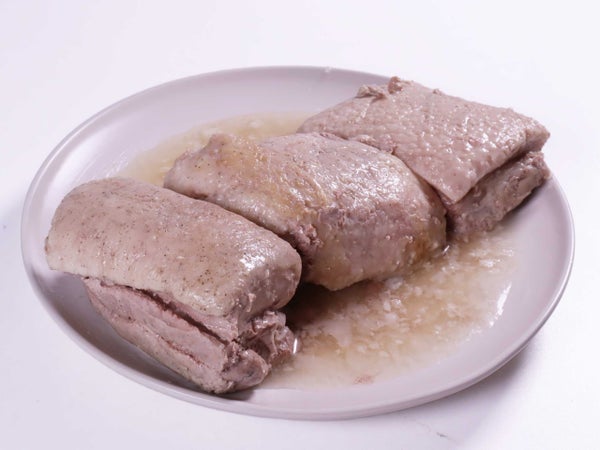 下茹で済み、といってもすでに十分やわらかく脂身もトロトロです。そのままタレをかけるだけでも提供できる仕上がりです。
