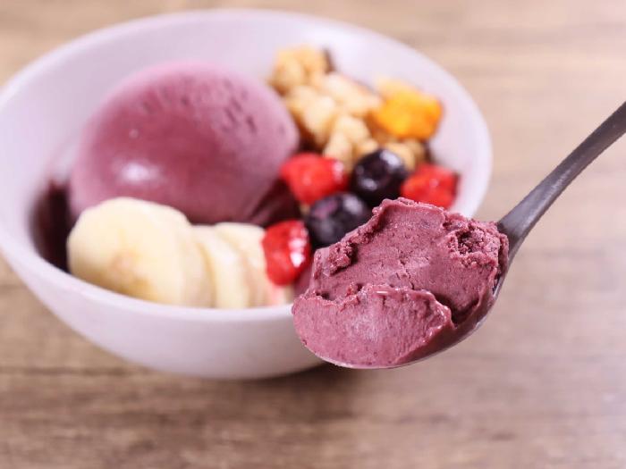 高濃度のアサイーをたっぷり配合した、香料・着色料不使のアサイーアイスです。