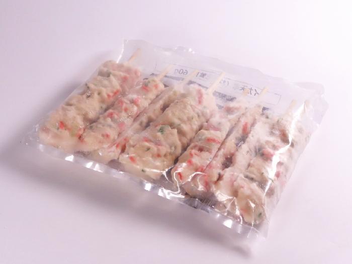 新鮮なイカのすり身に青ねぎと紅しょうがを混ぜて串に刺しふんわりとした食感に仕上げました。宴会メニューやイベントにもおススメの串です。