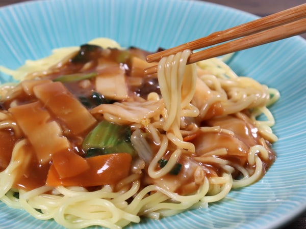 オイスターソースとごま油が香るとろみのあるあんが麺にからみます。