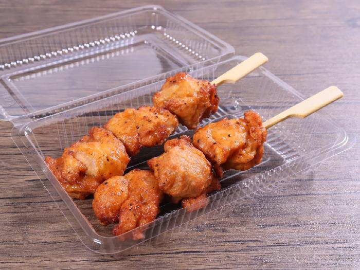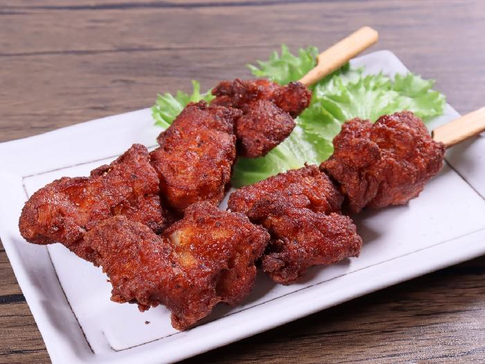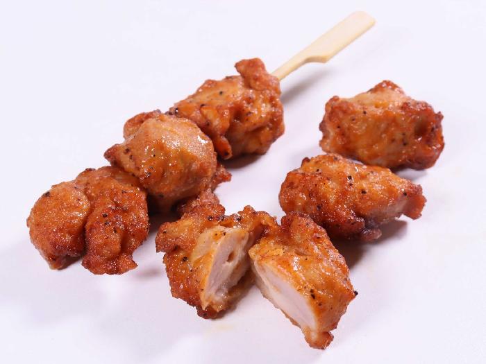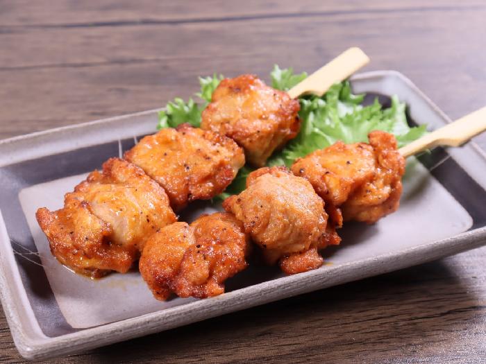 鶏もも肉を焼き上げて、ワンハンドで食べやすいよう串に刺しました。唐辛子の程よい辛さと隠し味のにんにくとごま油が食欲をそそります。マルチオペレーション対応で調理の選択肢を増やし、使いやすさにも配慮しました。