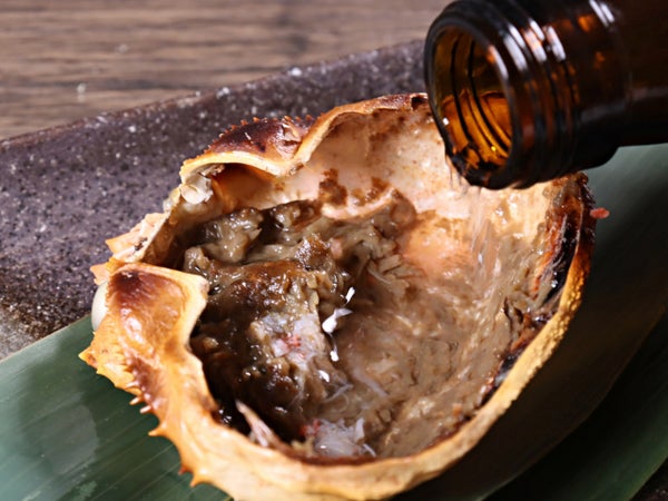 甲羅ごと焼く際は焦げないようにホイルなどをかぶせてください。