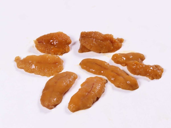 並べて凍結してあります。うに身の形状が見える盛り付けや料理にお使いください。