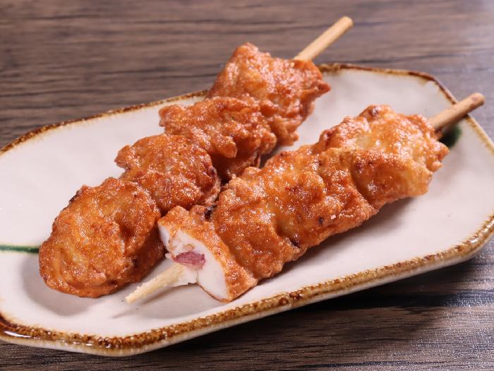 新鮮なイカのすり身にたこを混ぜて串に刺しふんわりとした食感に仕上げました。宴会メニューやイベントにもおススメの串です。