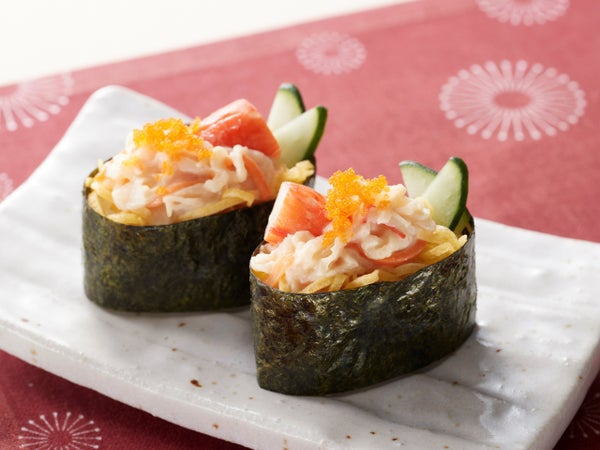 ほぐしたカニカマとブロックのカニカマを使用。全体の約14%がカニカマです(仕込時)。